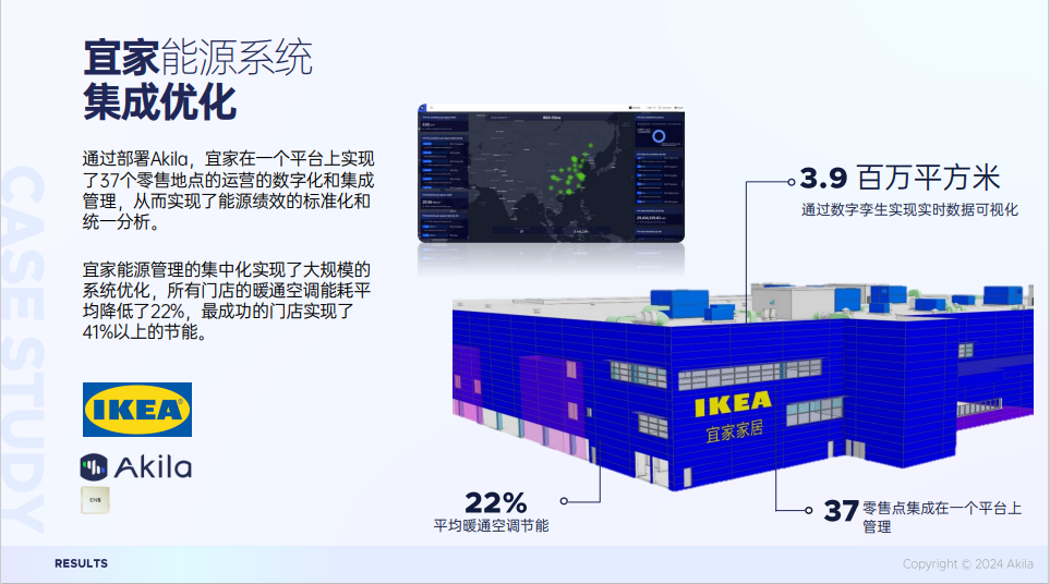 在专业的工程研发团队和先进技术的加持下,Akila在中国已经积累了80多家客户,涵盖工业制造、物流、商业地产、零售、学校、私人医疗机构等各个行业的头部企业。如宜家、莱佛士医院、德威公学、圣戈班集团、阿里斯顿、波洛莱物流、丘比制造等。